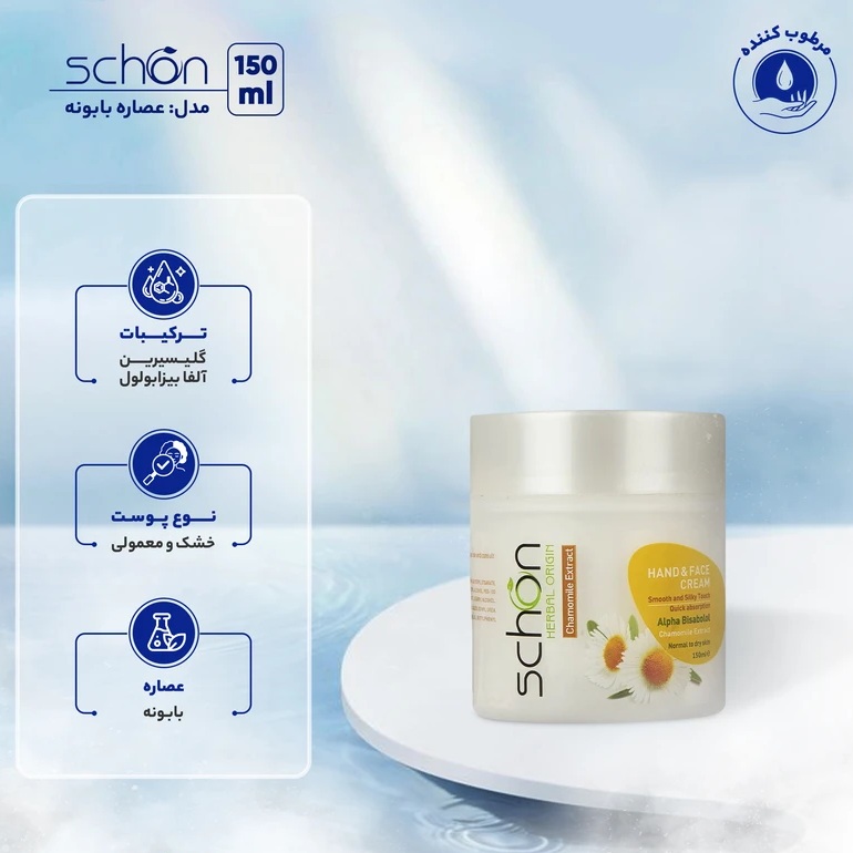 کرم مرطوب‌کننده دست و صورت شون مدل عصاره بابونه حجم 150 میلی‌لیتر